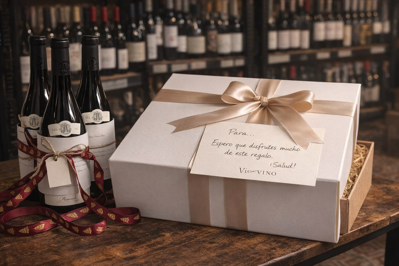 We choose the wine, write your card and deliver it anywhere in Spain.
